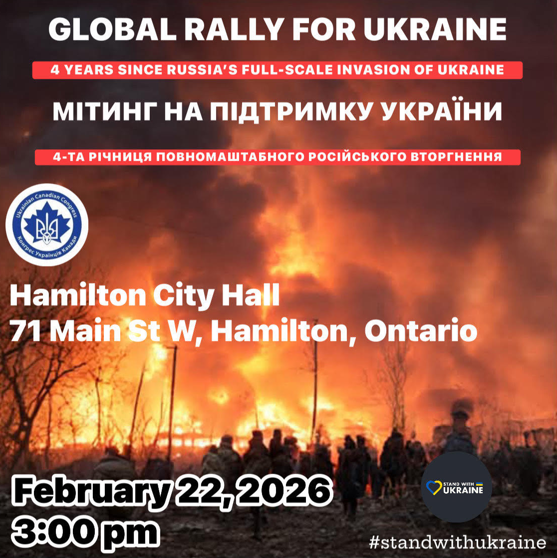 We invite you to join the Ukrainian community of Hamilton for a rally dedicated to the 4 years since russia’s full-scale invasion of Ukraine.