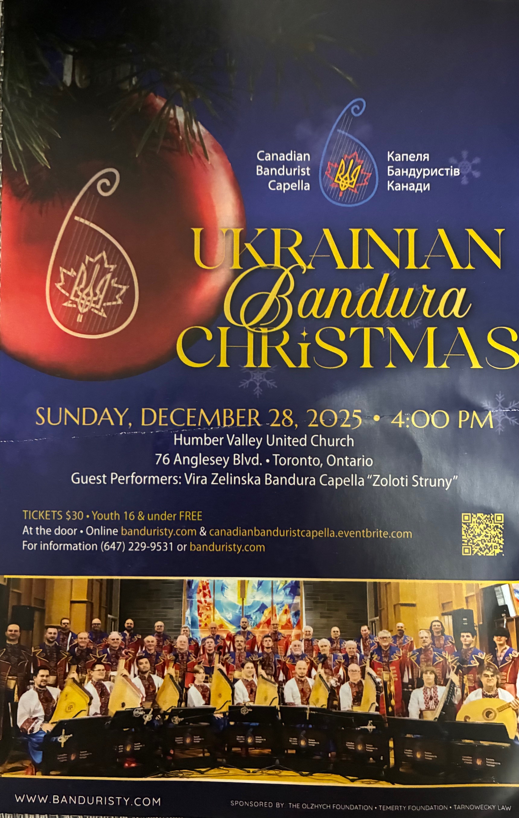 Canadian Bandurist Capella invites you to visit Ukrainian Bandura Christmas concert in Toronto.
