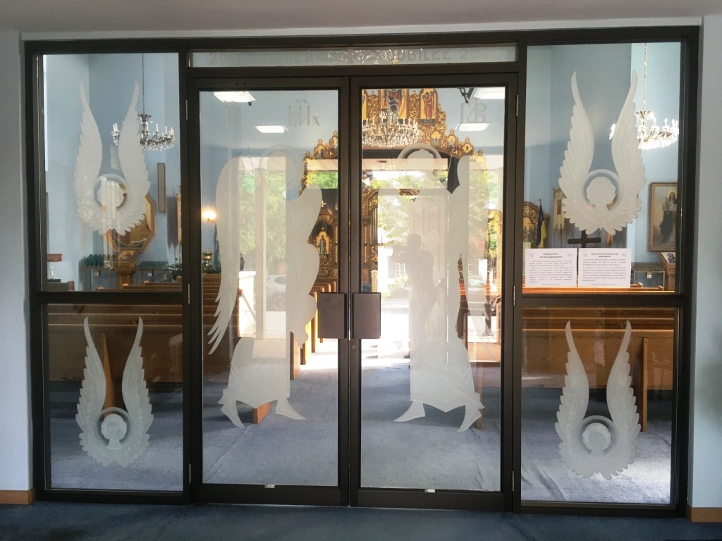 and from 1996 to the present time the Parish is led by Father Zenon Walnycky.       In 2000, the glass doors and side panels to the entrance of the Church Nave were decorated with the etched icons of Angels and Cherubs designed